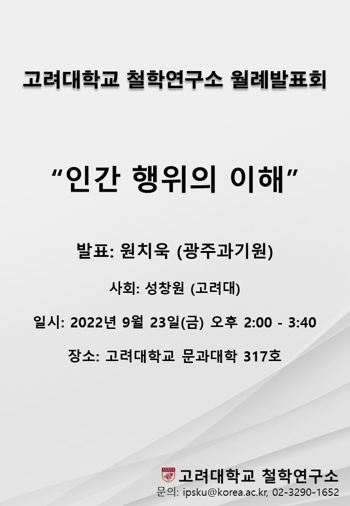 [고려대 철학연구소] 9월 월례발표회