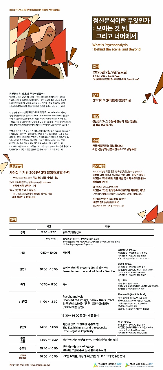 한국임상정신분석학회 제12차 연차학술대회 : '정신분석이란 무엇인가: 보이는 것 뒤, 그리고 너머에서'