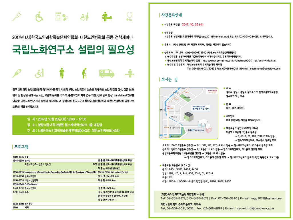 *사전등록신청서 접수 및 문의는 한국노인과학학술단체연합회 이메일로 보내주세요(iagg2013@hanmail.net)