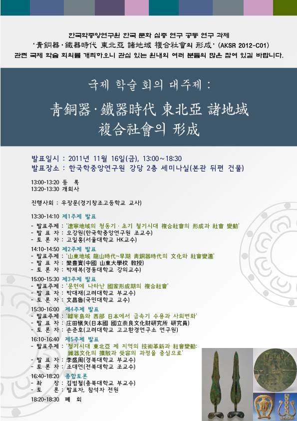 주 제 : 靑銅器․鐵器時代 東北亞 諸地域 複合社會의 形成