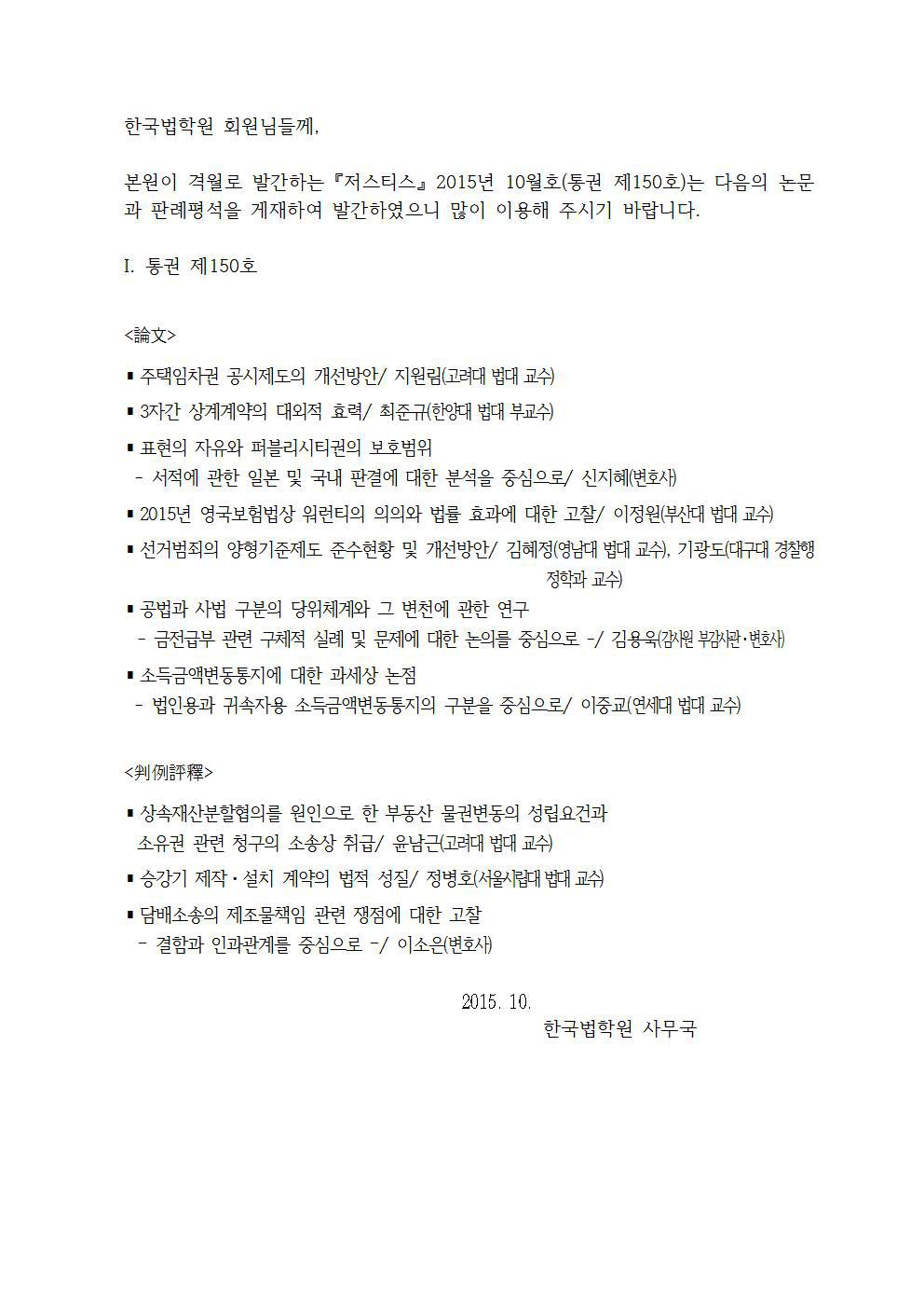 <저스티스 통권 제150호 간행>