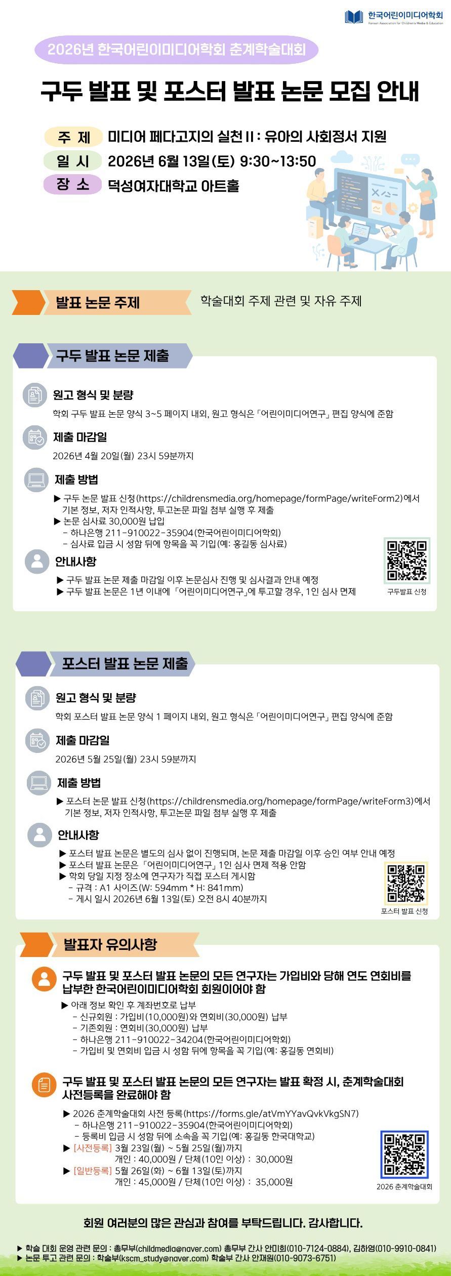2026년 한국어린이미디어학회 춘계학술대회 사전등록 및 구두/포스터 발표 논문 모집 안내