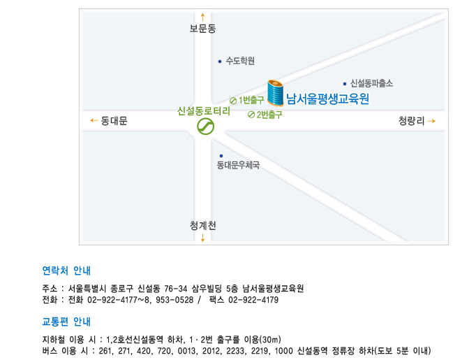 1호선 신설동역 ②번 출구 남서울평생교육원)