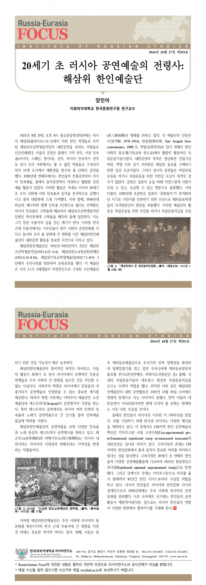 제291호 20세기 초 러시아 공연예술의 전령사: 해삼위 한인예술단
