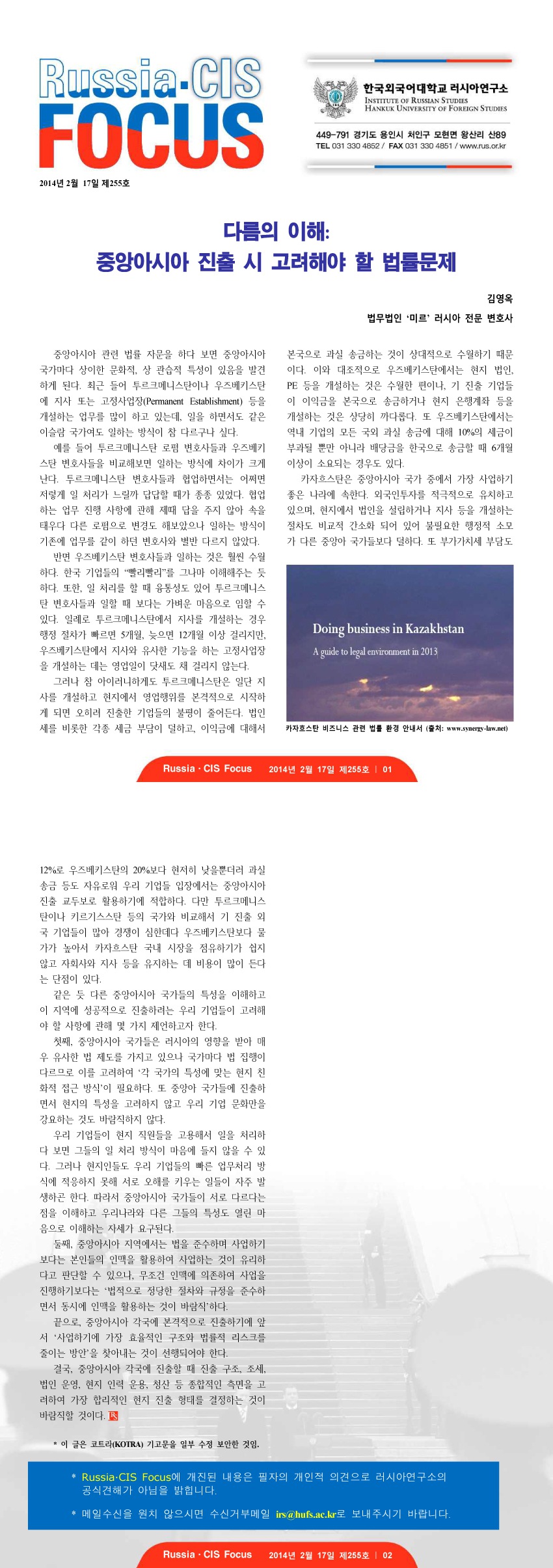 제255호 다름의 이해: 중앙아시아 진출 시 고려해야할 법률 문제