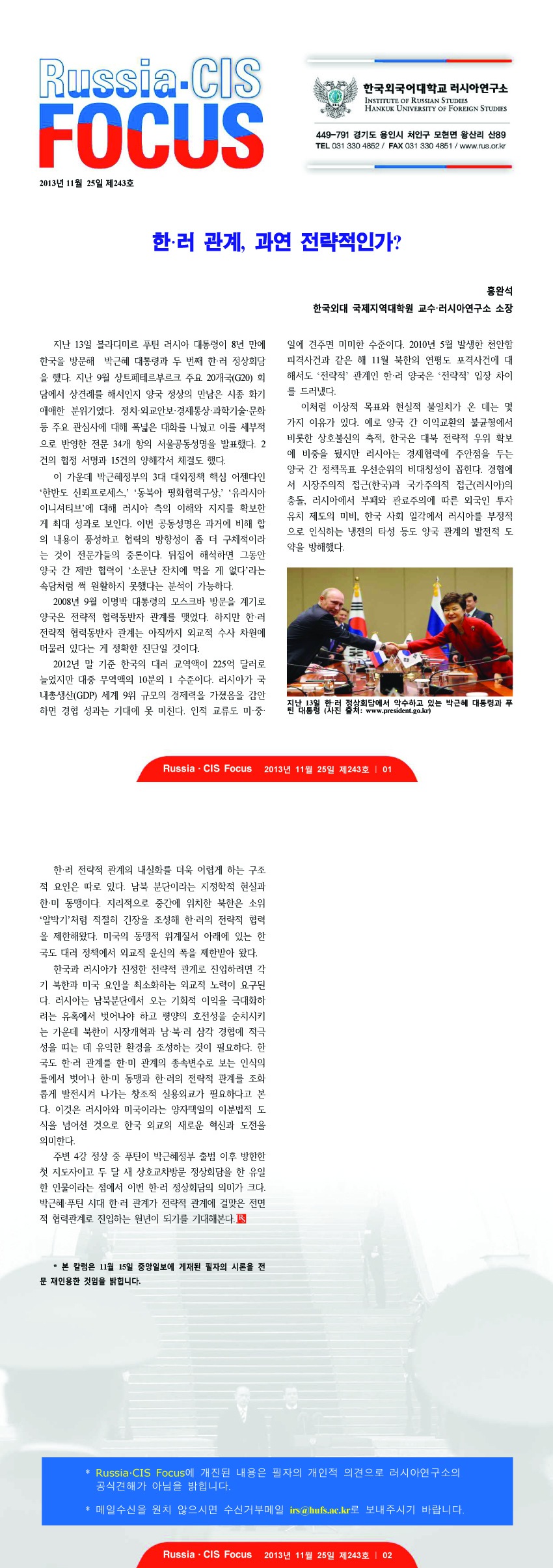 제243호 한.러 관계, 과연 전략적인가?