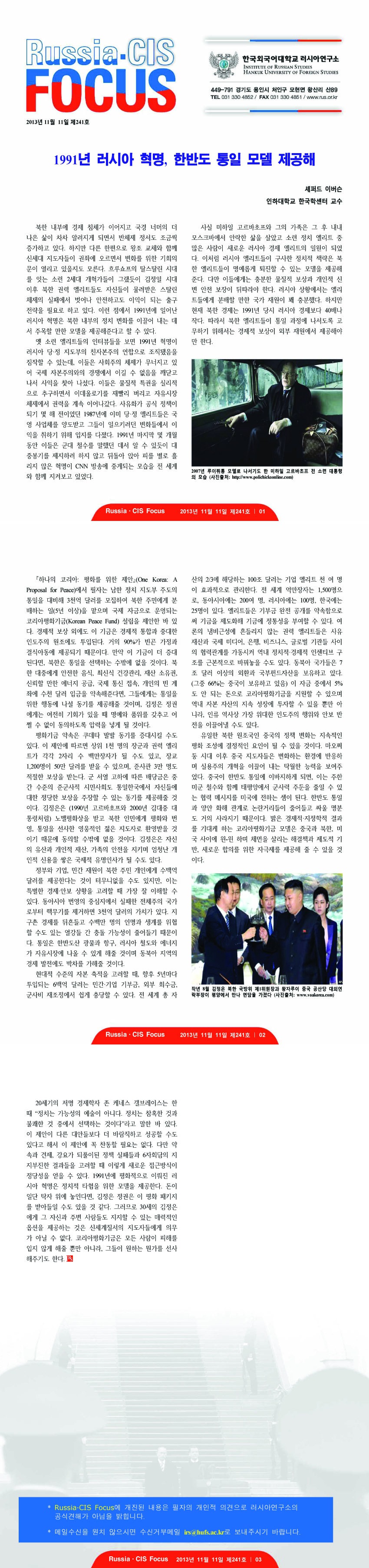 제241호 1991년 러시아 혁명, 한반도 통일 모델 제공해