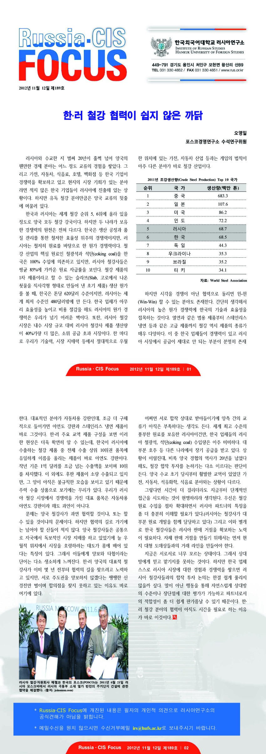 제189호 한·러 철강 협력이 쉽지 않은 까닭