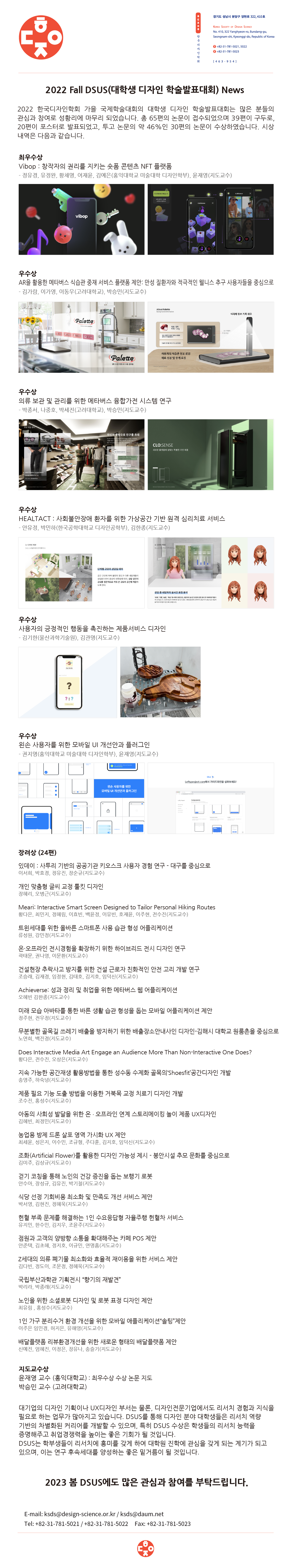 2022 Fall DSUS(대학생 디자인 학술발표대회) News