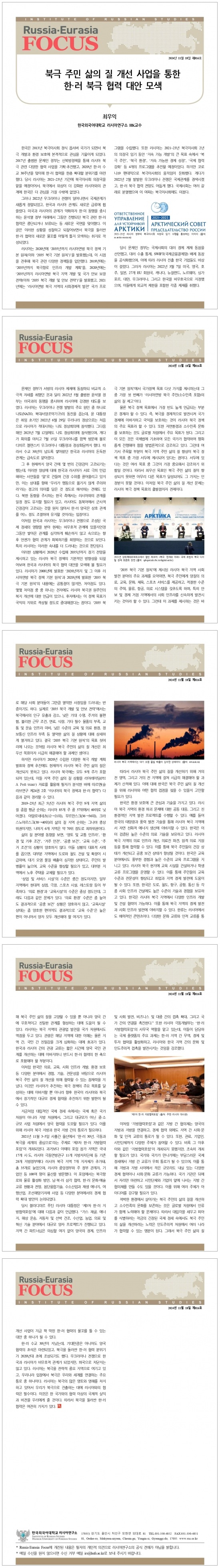 제816호 북극 주민 삶의 질 개선 사업을 통한 한·러 북극 협력 대안 모색