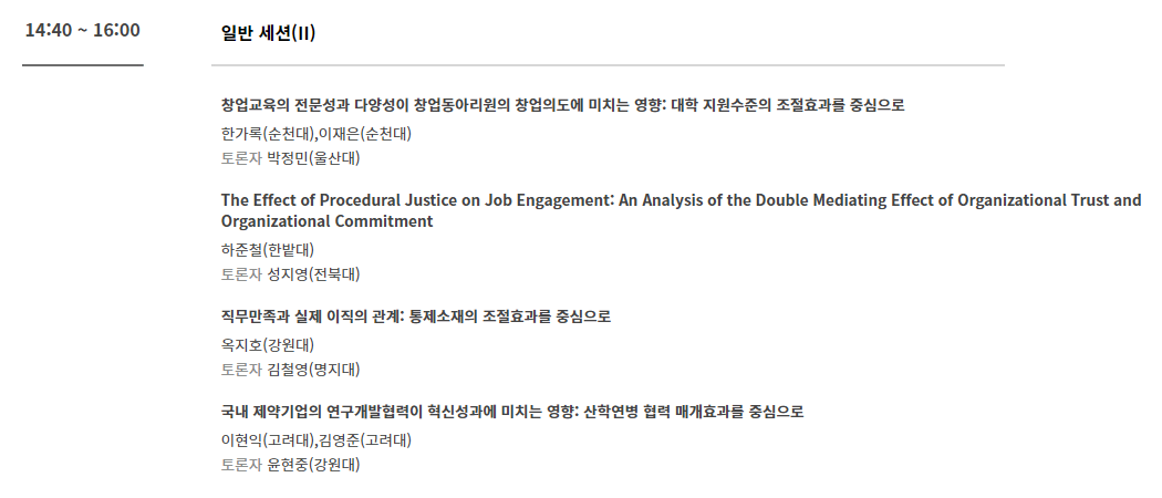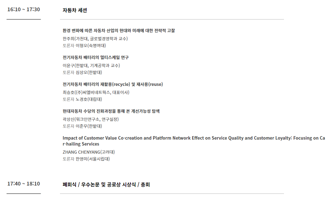 채널A: 이사회, 일반세션 I, K-Culture 세션, 폐회식/우수논문상 및 공로상 시상식/총회