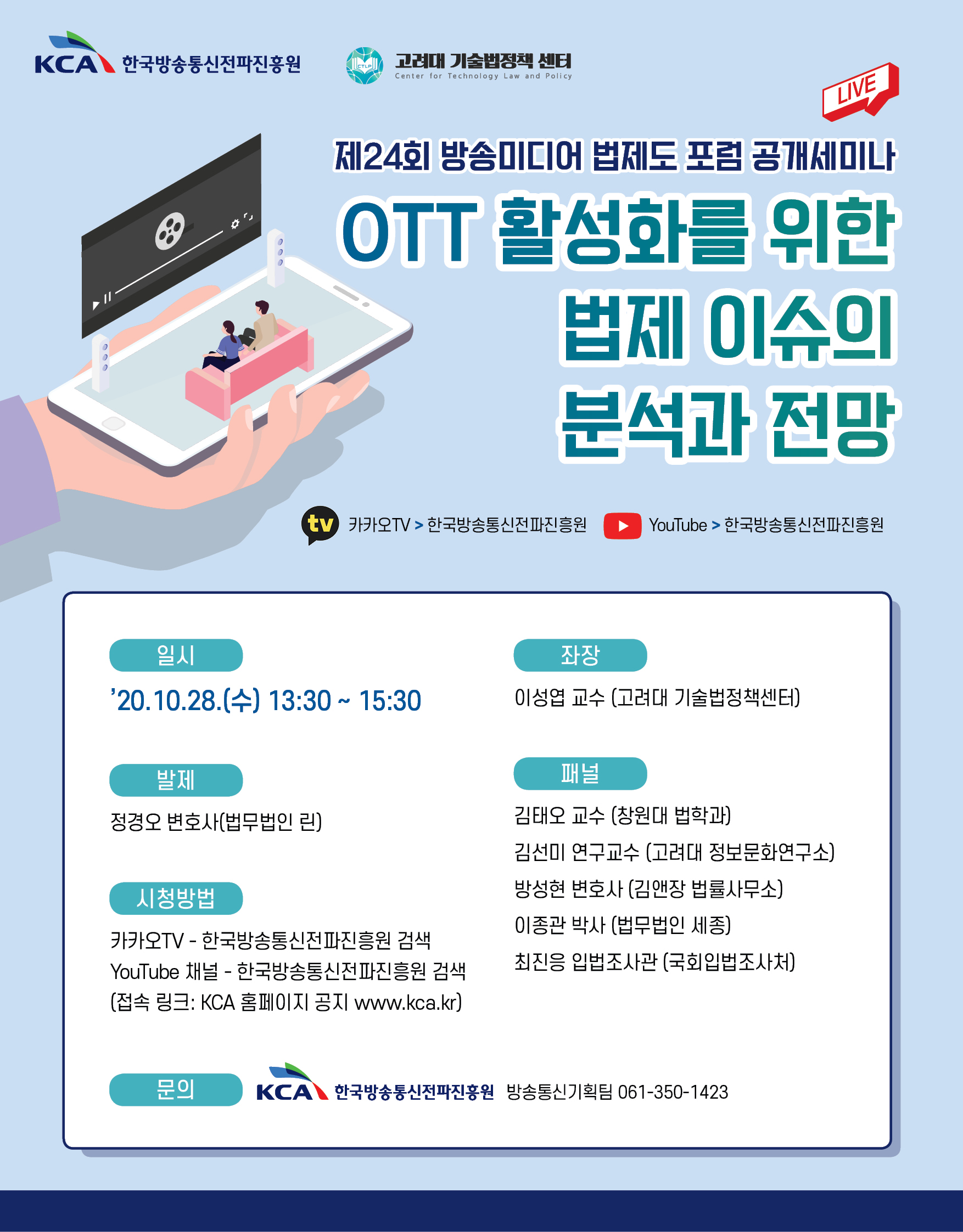 - 주제 : “OTT 활성화를 위한 법제 이슈의 분석과 전망