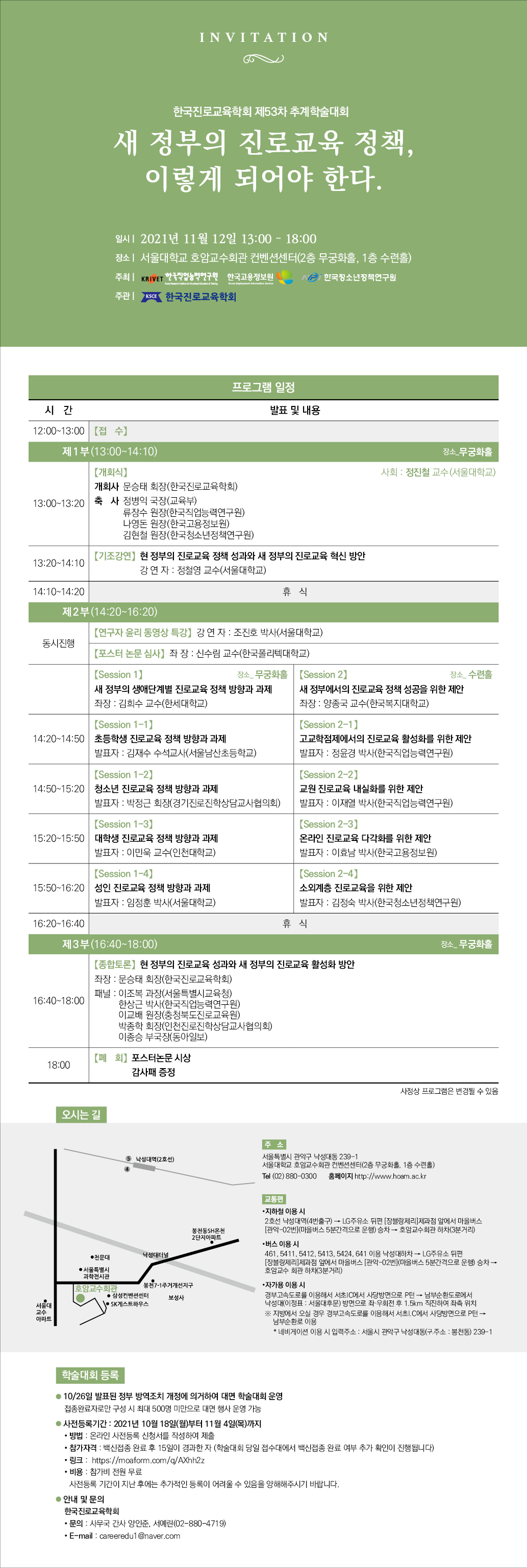 - 개최장소: 서울대학교 호암교수회관 컨벤션센터 (2층 무궁화홀, 1층 수련홀)