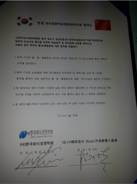 2013년 중국 MOU 협약서