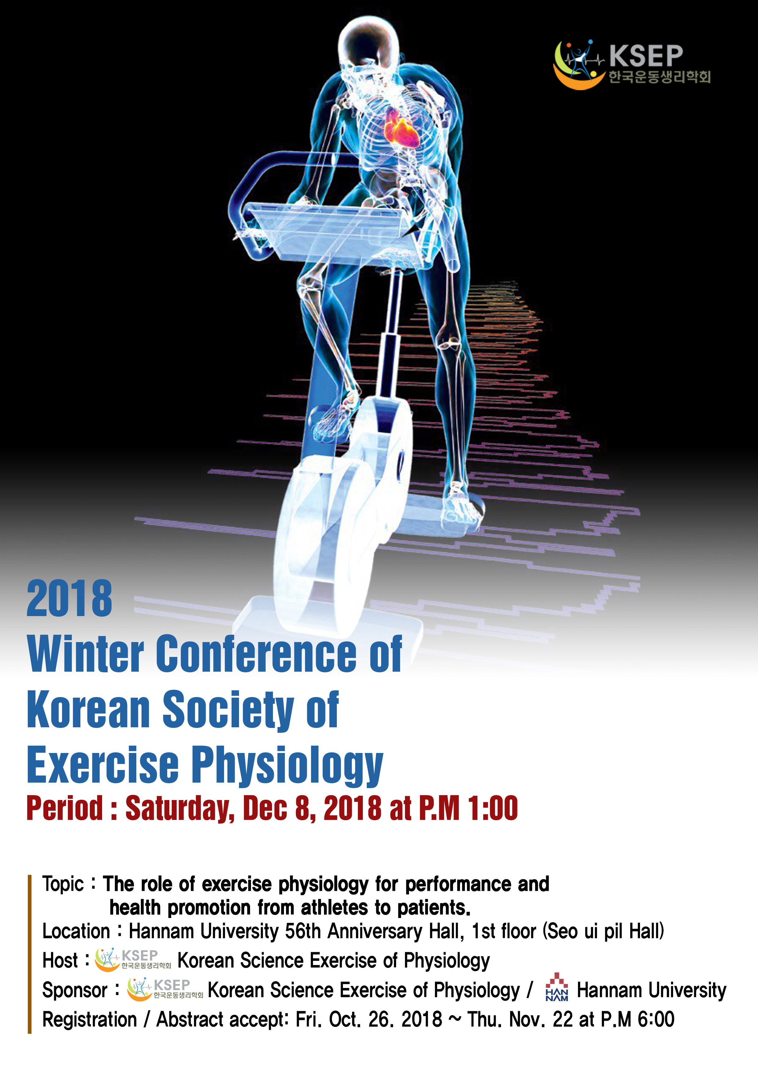 2018년도의 마지막 학술대회인 2018년 한국운동생리학회 동계국제학술대회가 개최됩니다.