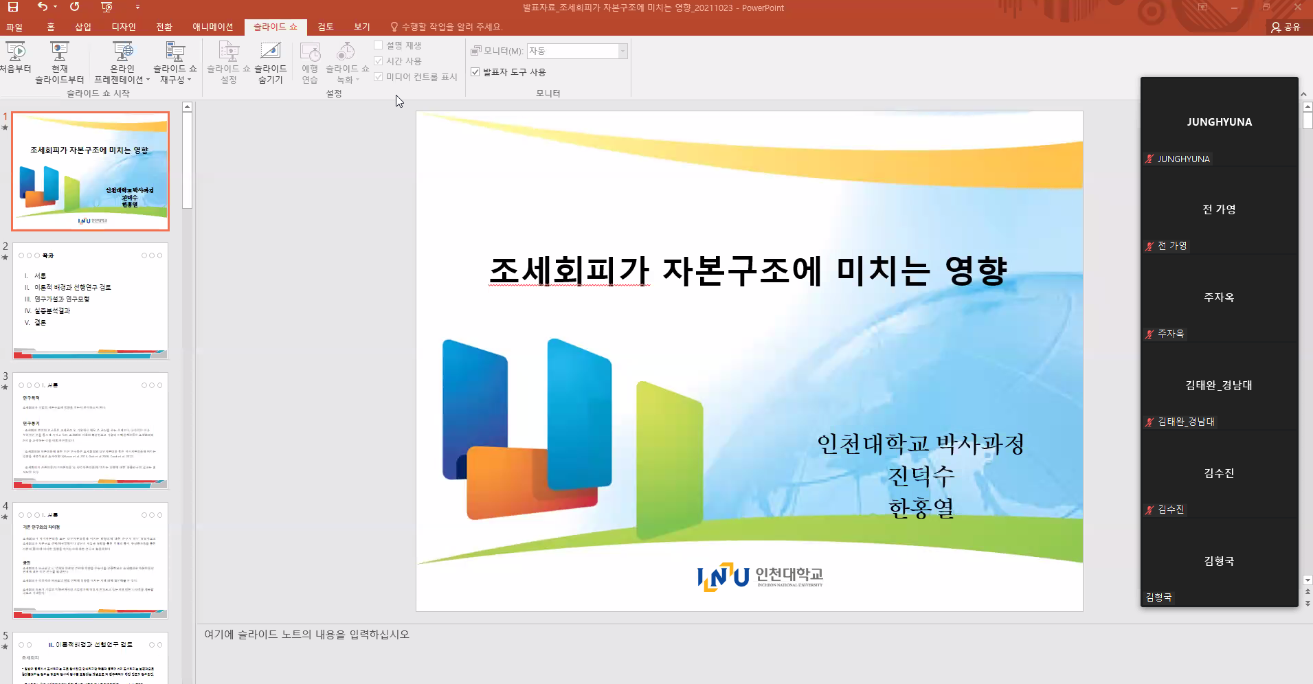 2021 추계학술대회 분과별 발표