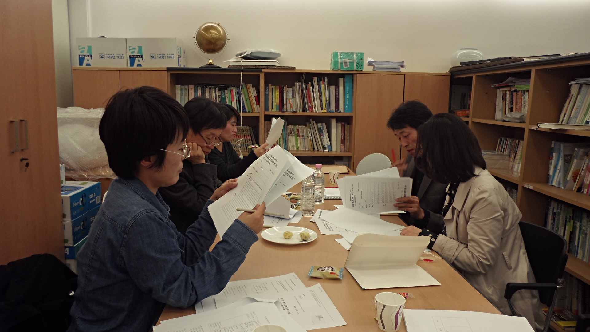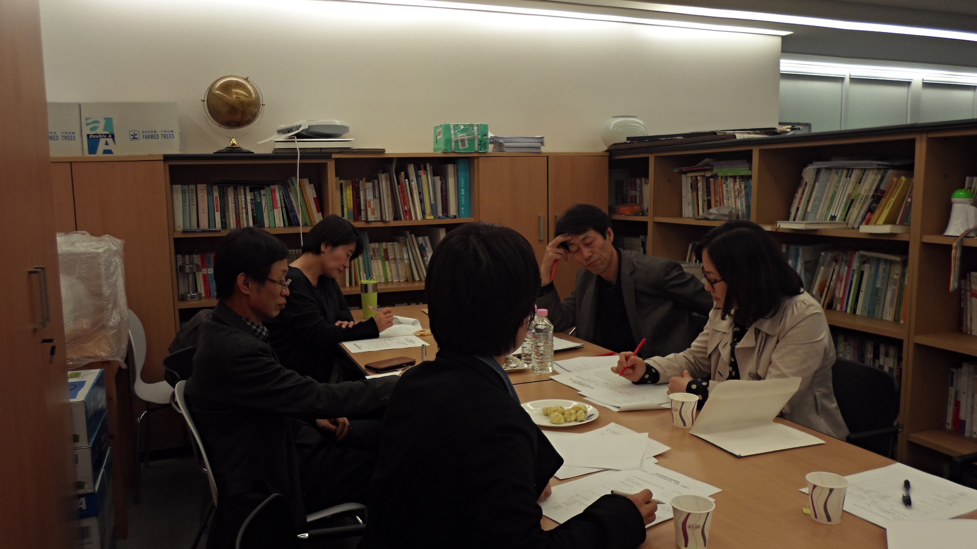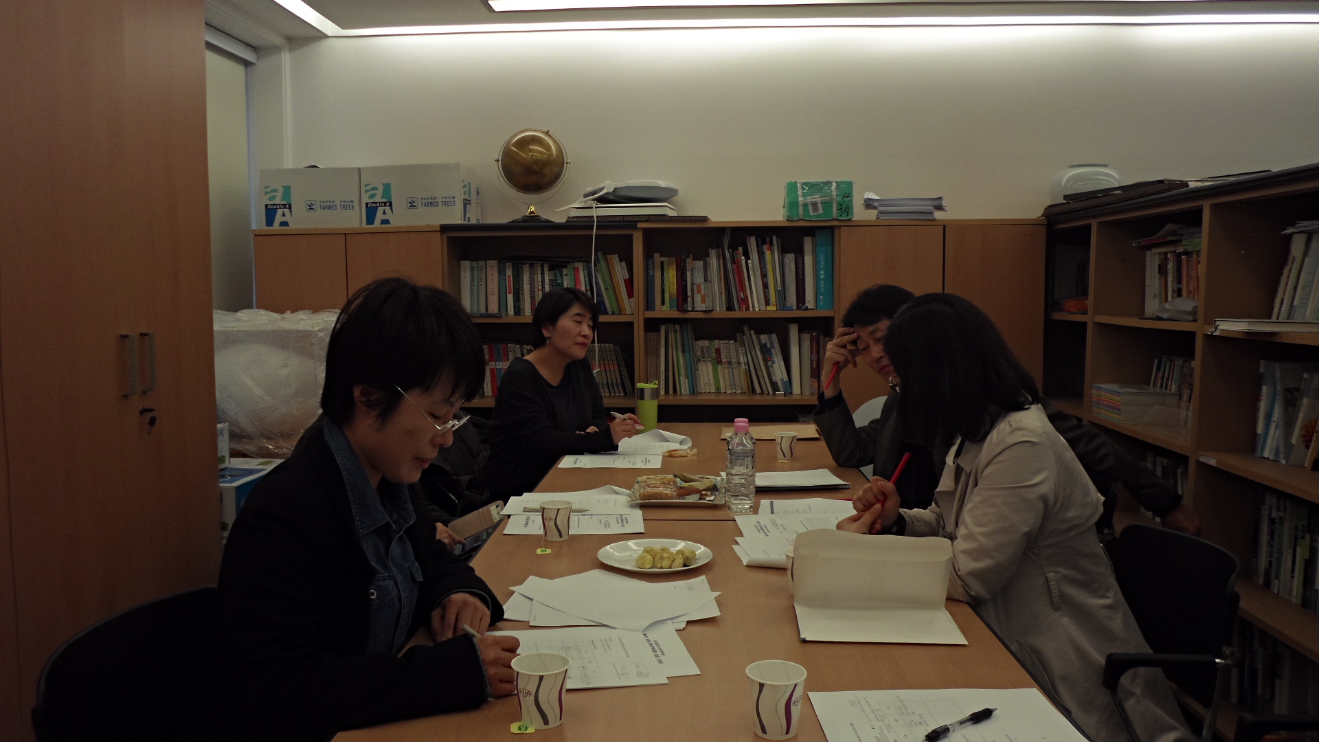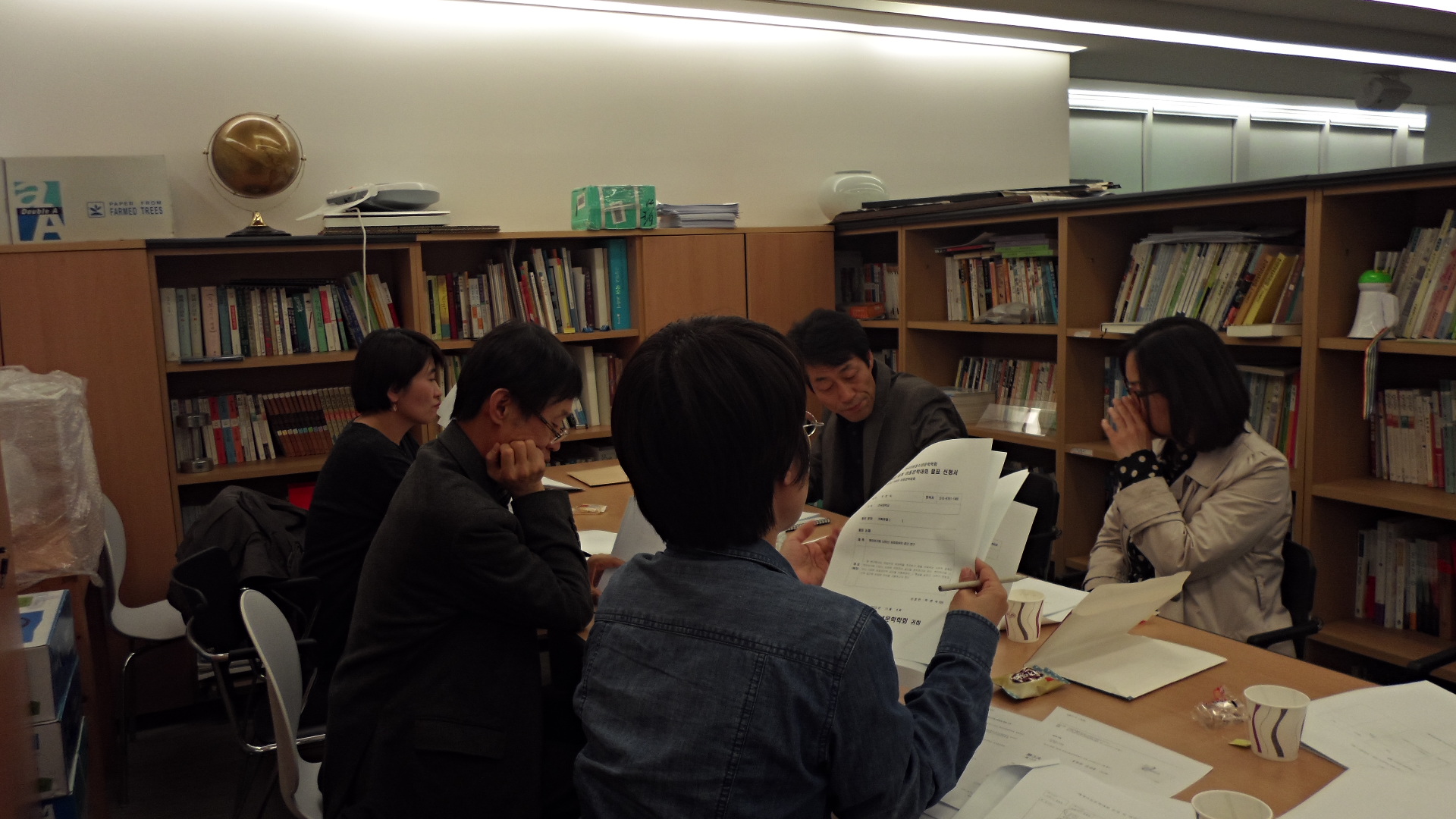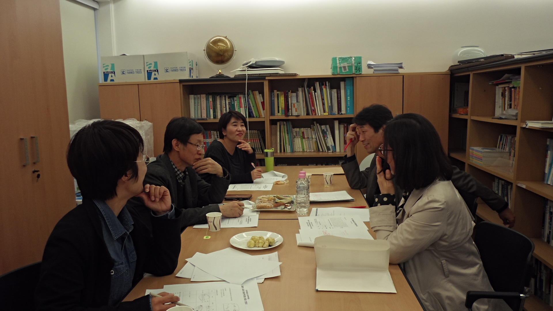 2013년 11월 8일 토요일, 오후 4시 30분, 세교연구소에서 하반기 정기 이사회를 열었습니다. 원종찬, 김이구, 조은숙, 염희경, 장수경 선생님께서 열심히 의견을 나누고 계십니다.
