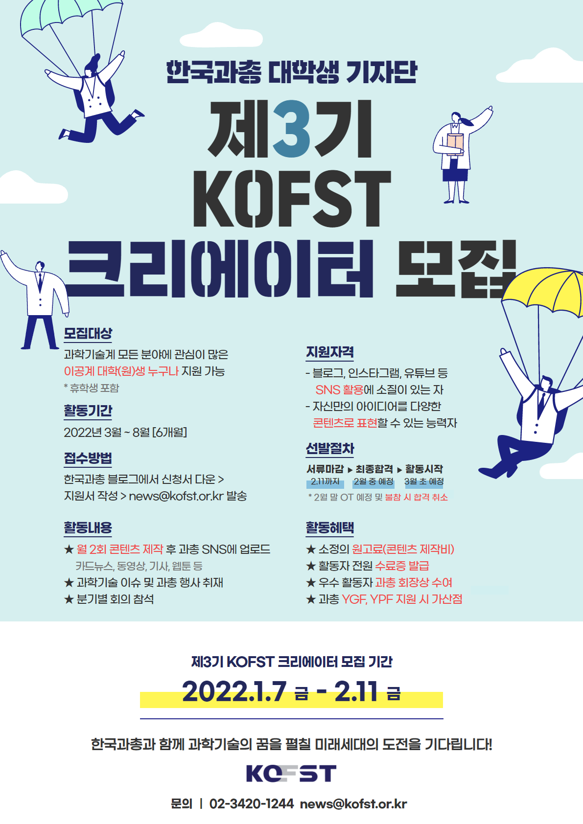 [한국과총] 제3기 KOFST 크리에이터 모집 안내(~2.11)