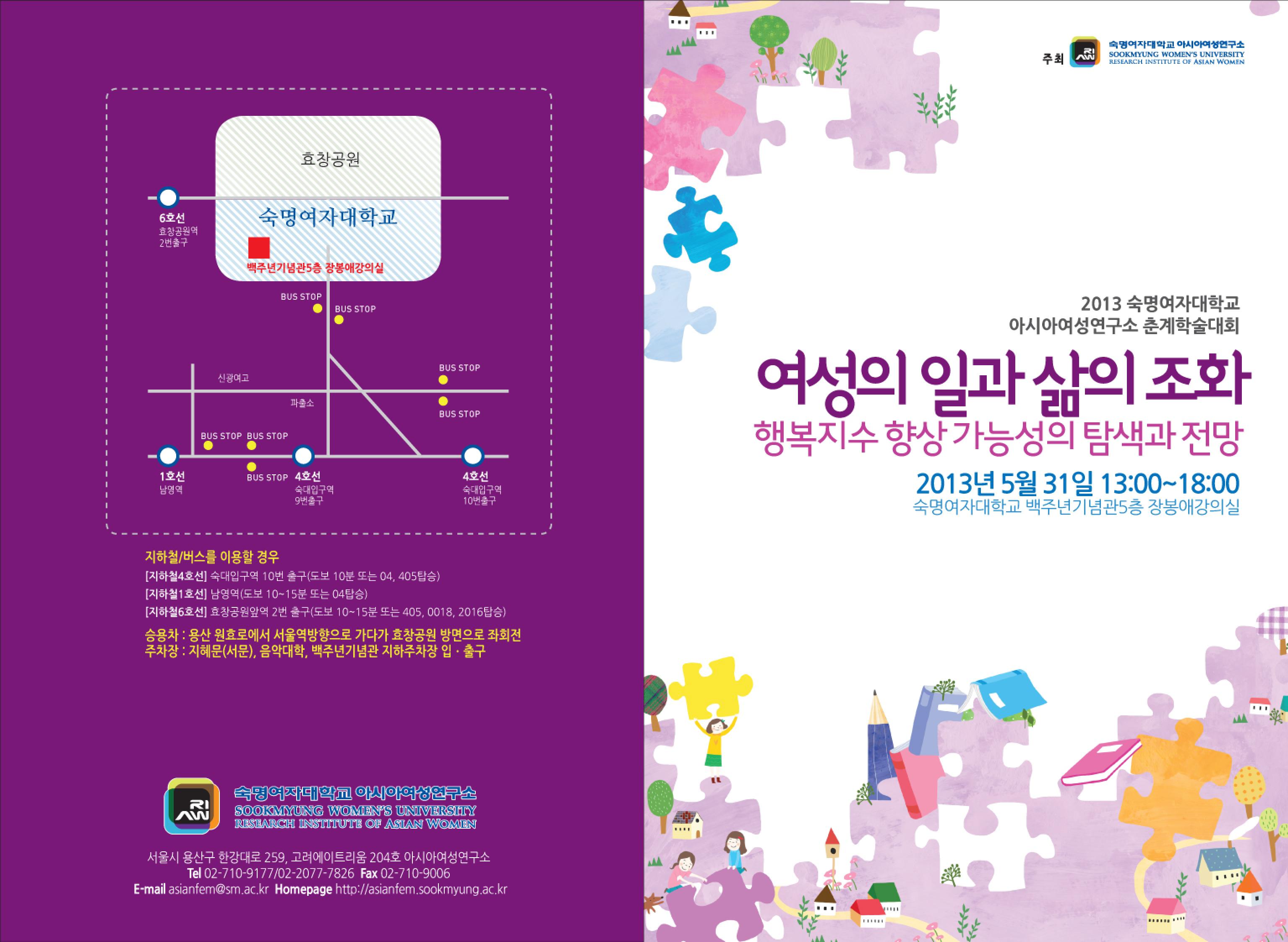 2013 춘계학술대회 <여성의 일과 삶의 조화: 행복지수 향상 가능성의 탐색과 전망>