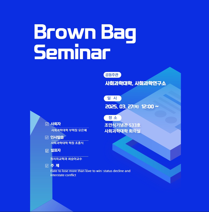 2025학년도 1학기 제1차 Brown Bag seminar를 개최하오니 많은 참여바랍니다.