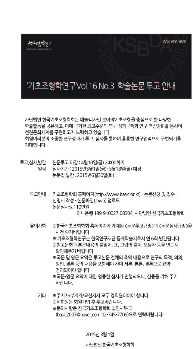 KSBDA '기초조형학연구' 16권 2호 (통권68호) 논문투고 안내