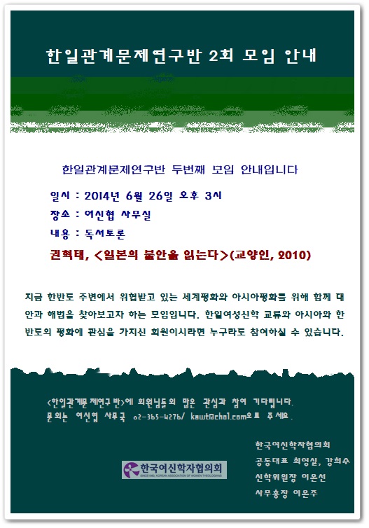 한일관계문제연구반 일정 안내입니다
