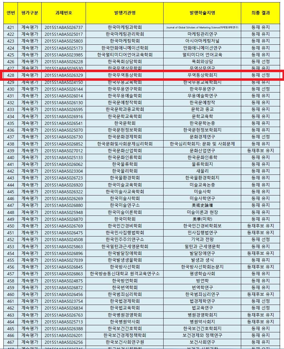 무역통상학회지 등재지 선정(한국연구재단 2015 학술지평가)