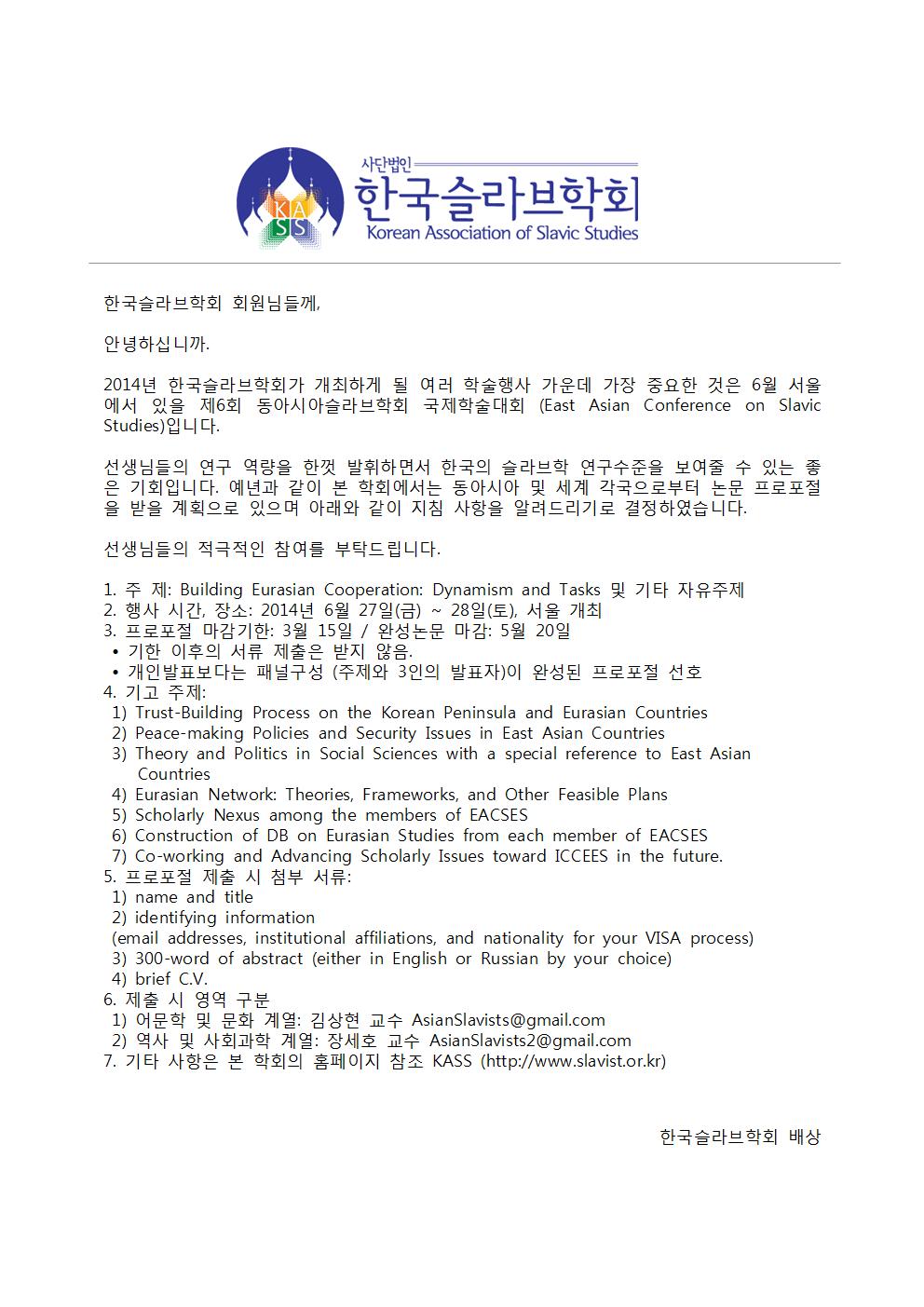 제6회 동아시아슬라브학회 국제학술대회 안내