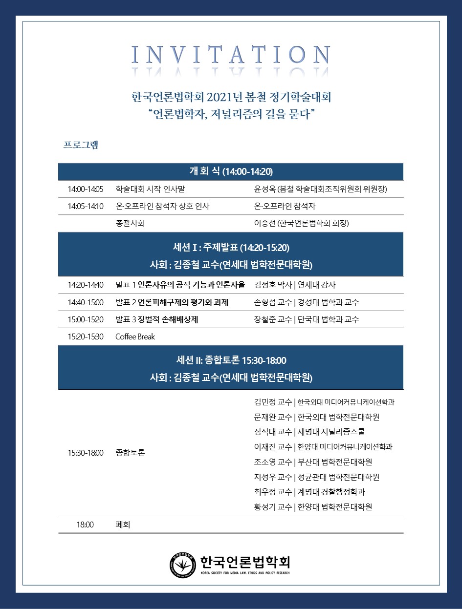 [공지] 한국언론법학회 2021 봄철 정기학술대회 초청장