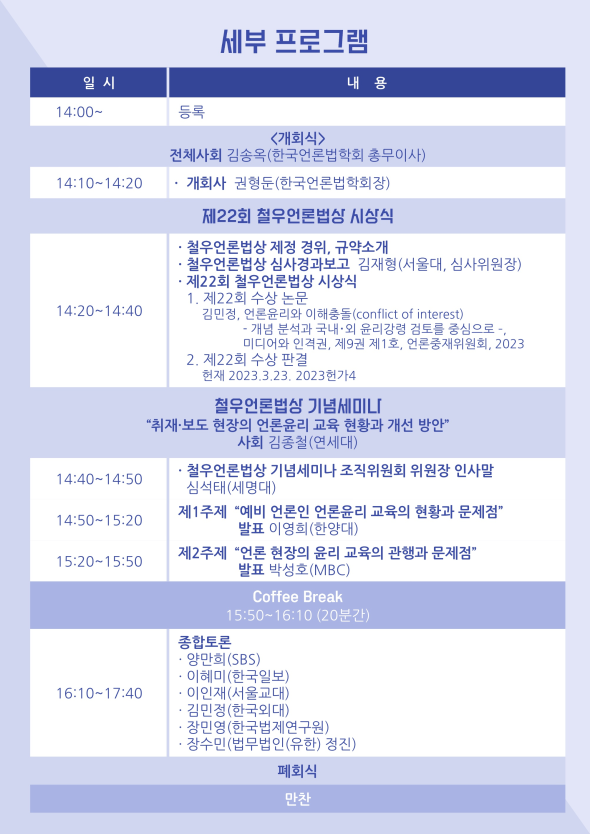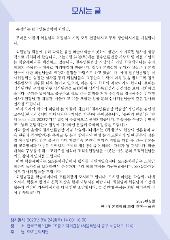[공지] 제22회 철우언론법상 시상식 및 기념 학술세미나 개최 안내